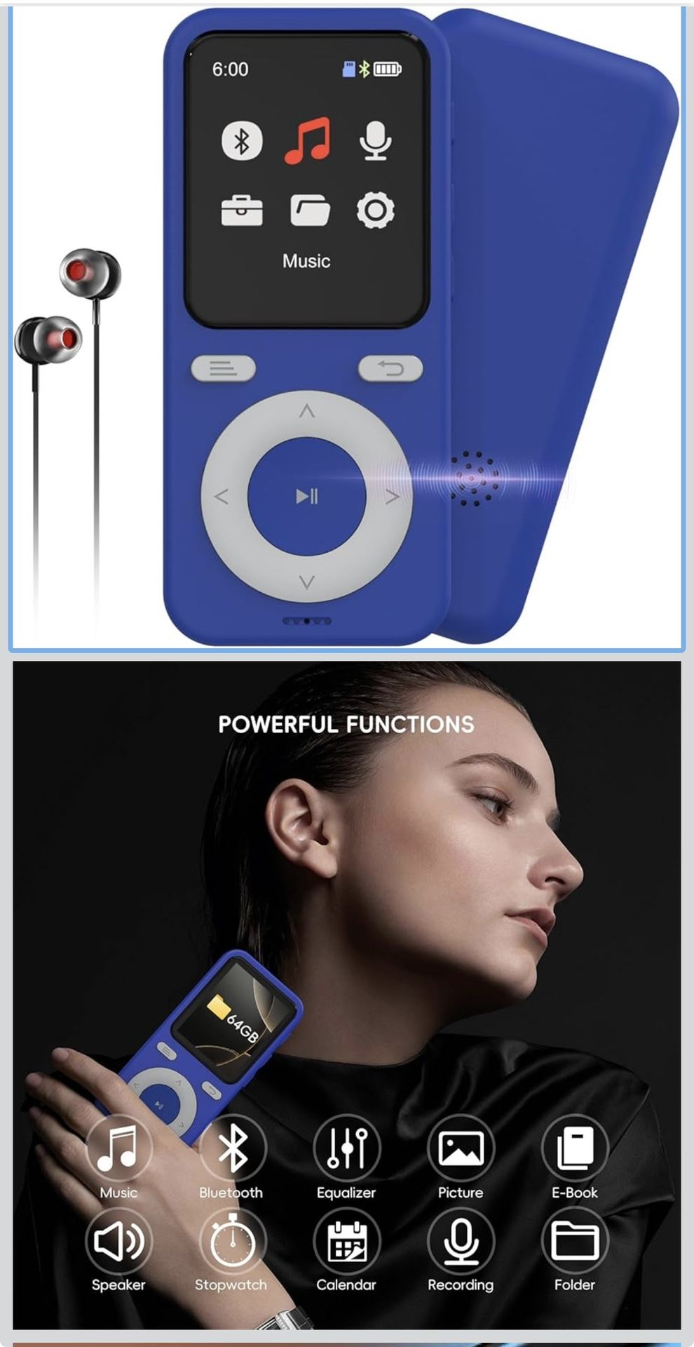 🔥Brand new🔥 64GB MP3 Player with Bluetooth,Bluetooth Portable HiFi Lossless Sound MP3 Player with Speaker,Voice Recorder,Shuffle for Kids,Hiking,Run