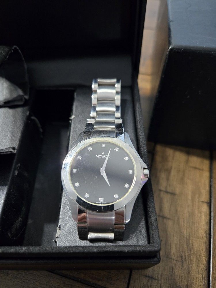 MOVADO Masino Watch 38mm Diamond Dial ALL Stainless Steel Wristwatch - 84.G2.1855 Worn but in great shape Comes with Box and Papers
