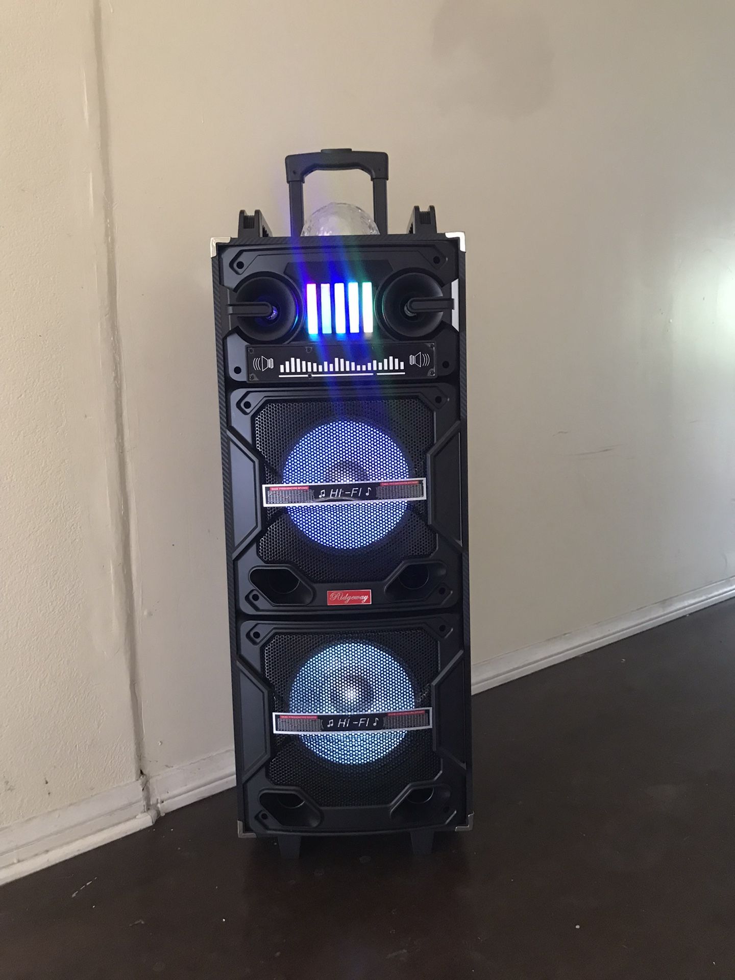 Wireless Music player - Double 10” woofer Microphone and Charger included ! Bluetooth - Fm Radio - Rechargeable USB PORT - SD MEMORY SLOT - Portable Compatible with any Bluetooth device ! VERY LOUD ! GREAT FOR OUTDOORS AND PARTIES ! Any Questions Please Message! SE HABLA ESPANOL !