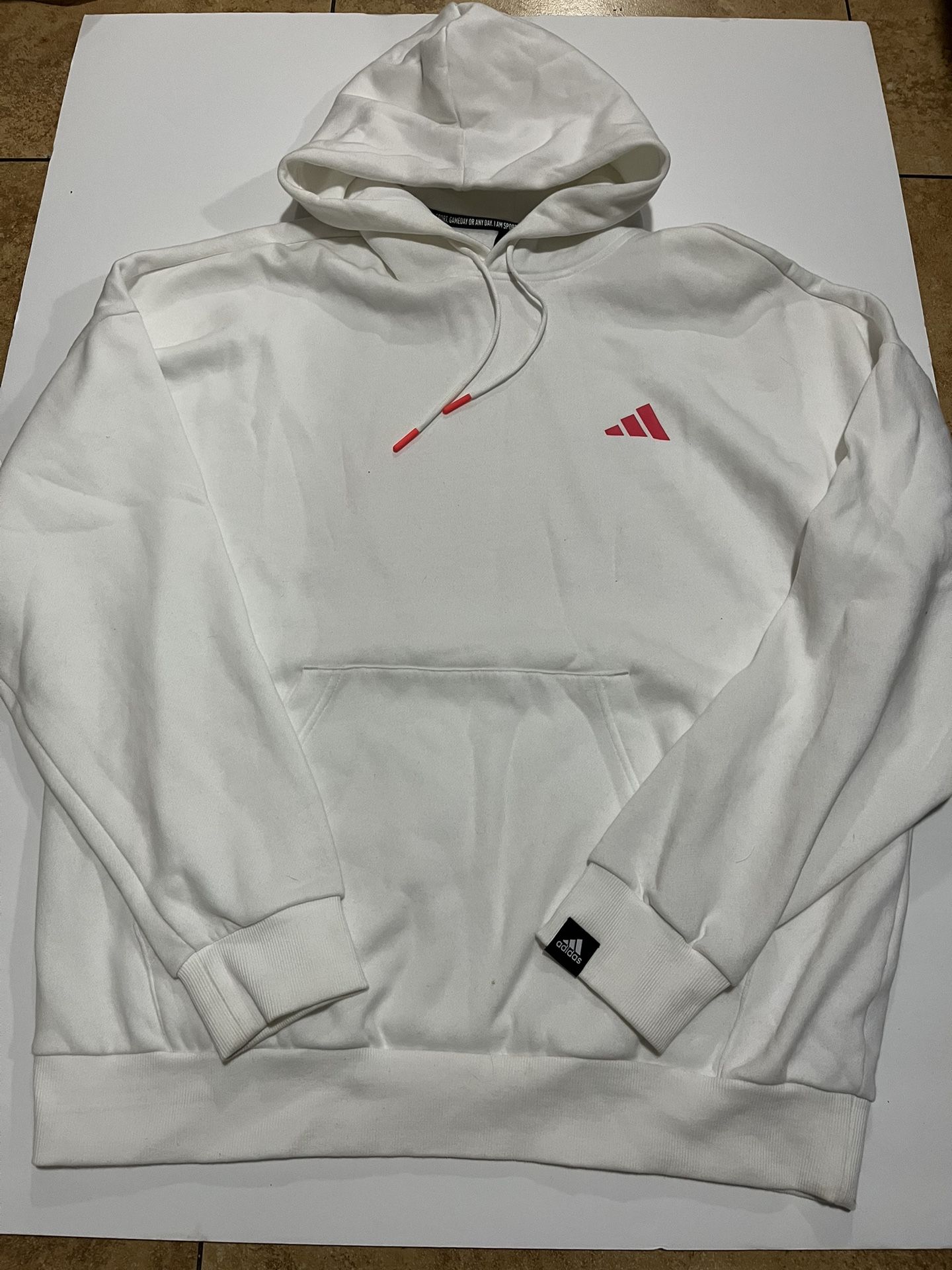 Adidas White Hoodie Three Stripes Men’s Large