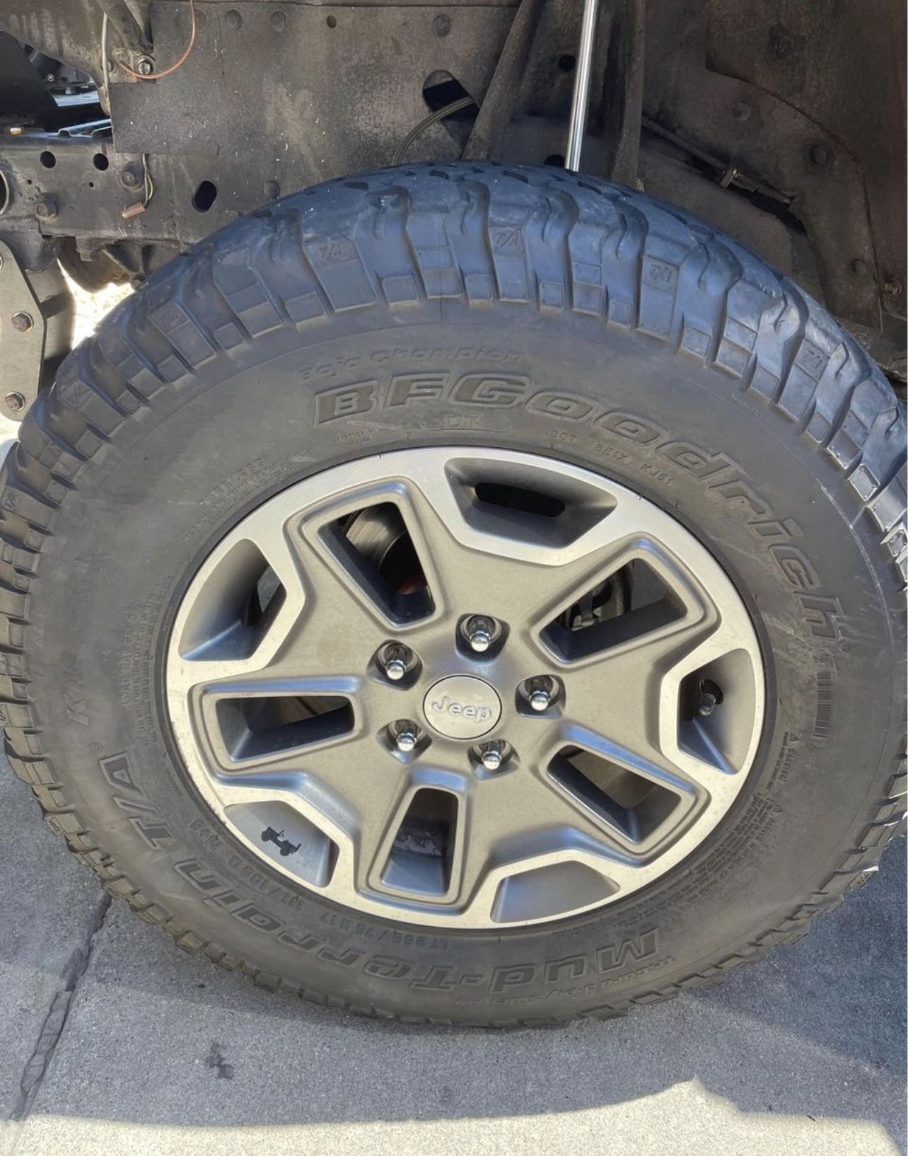 Selling my 31s -Good condition BFGs -Wheels are in good shape aside from a few rashes -tread is good, spare tire is brand new -no bends or cracks -not sure if it has tpms, they were on my YJ so didn’t them Wheels will be deep cleaned prior to sale! Looking to get $700 cash or best offer Located in Hercules
