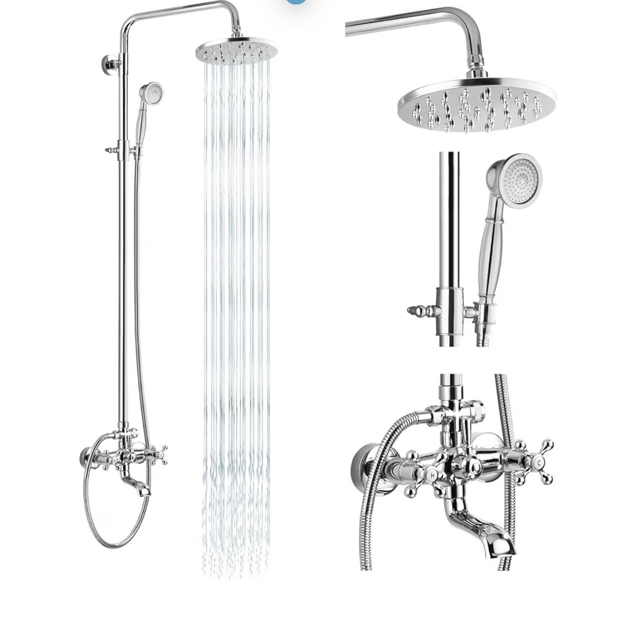 Brand new never installed. Beautiful addition to any bathroom remodel. All parts and components inside with an extra extension pipe. gotonovo Exposed Shower Faucet Set 8 Inch Rainfall Showerhead 3-Function Shower Fixture with Tub Spout 2 Corss Handles Shower System Polish Chrome. Paid $200 Locals only please