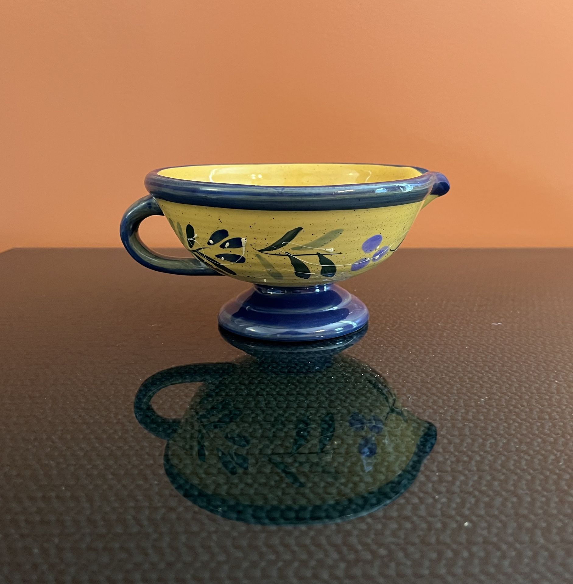 The Vintage Baum Bros. Style Eyes Blue Floral Collection Footed Bowl is a beautiful and charming piece of decorative cookware. This round bowl features a floral pattern with red, purple, and green on a yellow background, with blue trim. This piece adds a touch of vintage elegance to any table setting. Made of ceramic with a glossy finish, this original production style art pottery piece is perfect for all occasions and is sure to be a standout piece in any collection. The footed design and spout and handle details make it not only aesthetically pleasing but also functional for serving various dishes. Pickup is at a house near the college in the last photo, near downtown Woodstock. I have a houseful of things for sale here, so be prepared to spend some time to walk through if you so desire. Best offer. I am willing to deliver to a reasonable distance if you pay for my gas. I will need a deposit, if not full payment prior to my delivering. I am willing to ship if you pay for shipping. I will not hold any item without payment. I don’t require prepayment, but the item will go to the first person to pay for it.