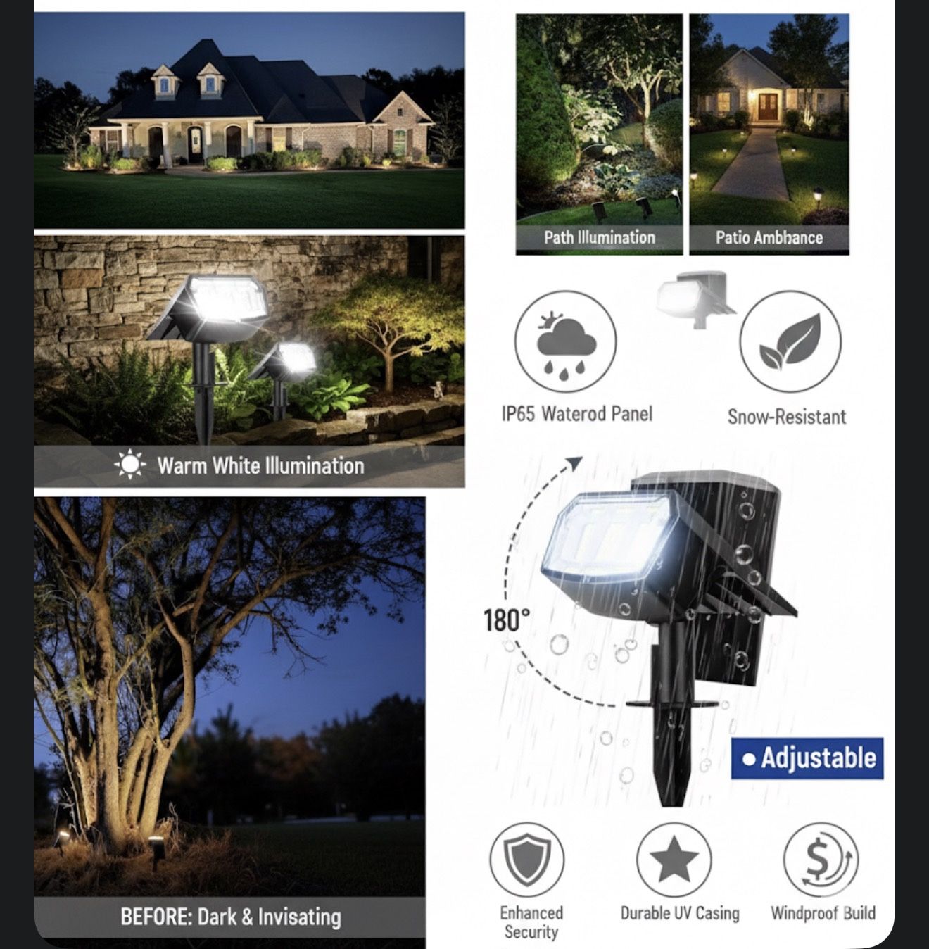 Solar Spot Lights Outdoor Waterproof 6 Pack IP65, 63 LED 3 Lighting Modes Spotlights