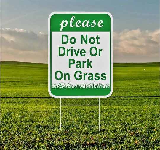 Green and white sign with clear instructions. Perfect for lawns and gardens. Please Do Not Drive Or Park On Grass Yard Sign Size: 12 inches in length x 16 inches in height. Please Do Not Drive Or Park On Grass Yard Sign are made with 5MM Corrugated Plastic Yard Signis durable and reusable. No Parking On Grass Sign is waterproof, durable and reusable, perfect for outdoor use. Double Side Printed for Visibility from All Directions. Include Metal Wire H-Stakes Stands 7" x 14" for your Yard Sign. Easy Installation: Installing the yard sign is very easy, all you have to do is sink its base into the soil or lawn, and it’s ready! Display in your lot, front yard, lawn, garden or any area with grass