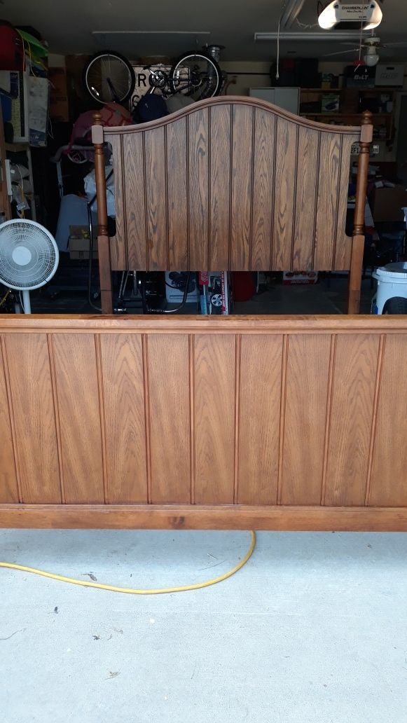 High-end Broyhill Oak queen bedroom set. Queen bed frame Dresser About 4 yrs old. Great condition. The dresser has a few scratches on the very top.