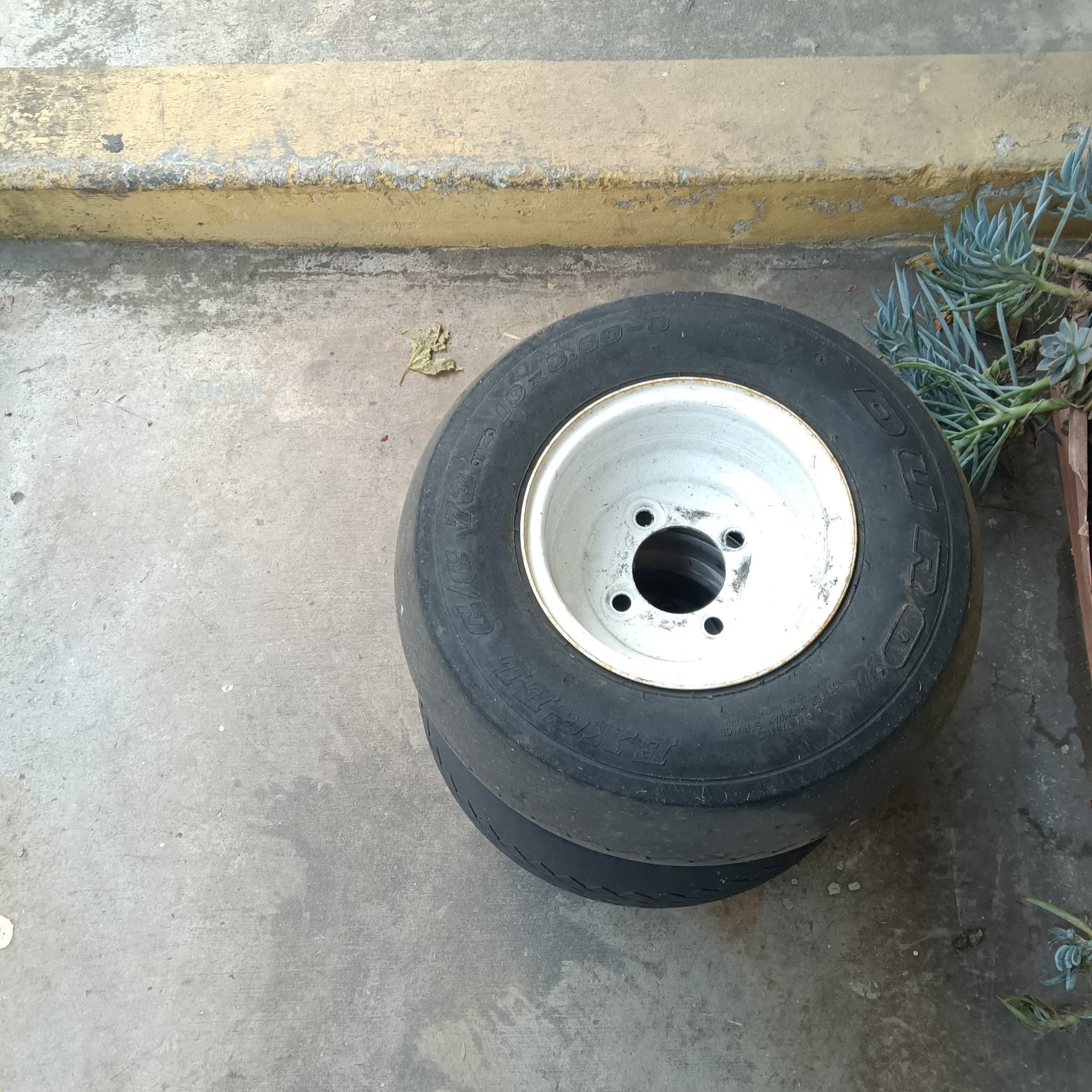 Set of 4 golf cart tires with rims.