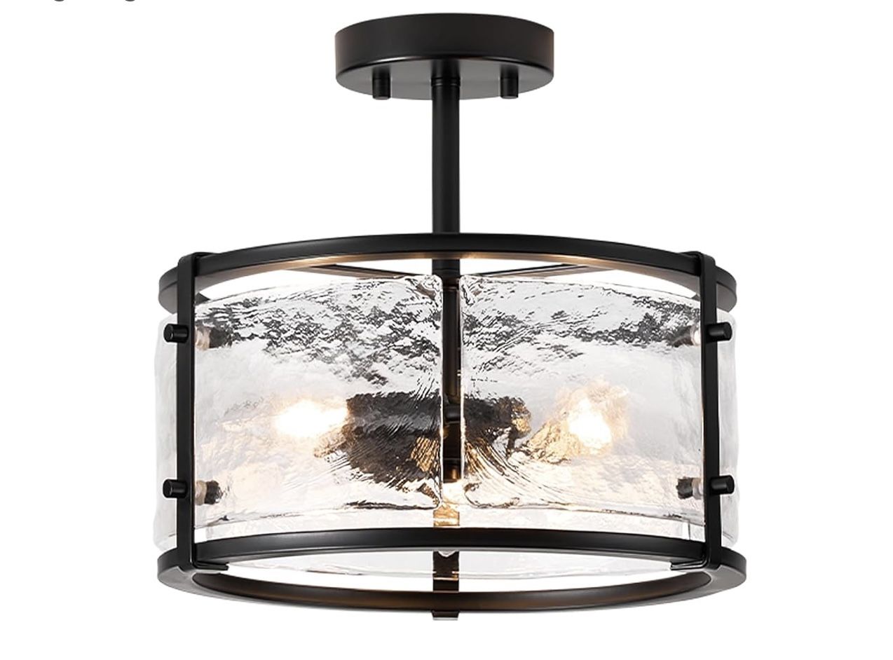 Ceiling Light Fixturs - Black Ceiling Lights - 14inch Ceiling Light Fixtures with Glass - E12 3-Light Hallway Lighting Fixtures C2118-BK