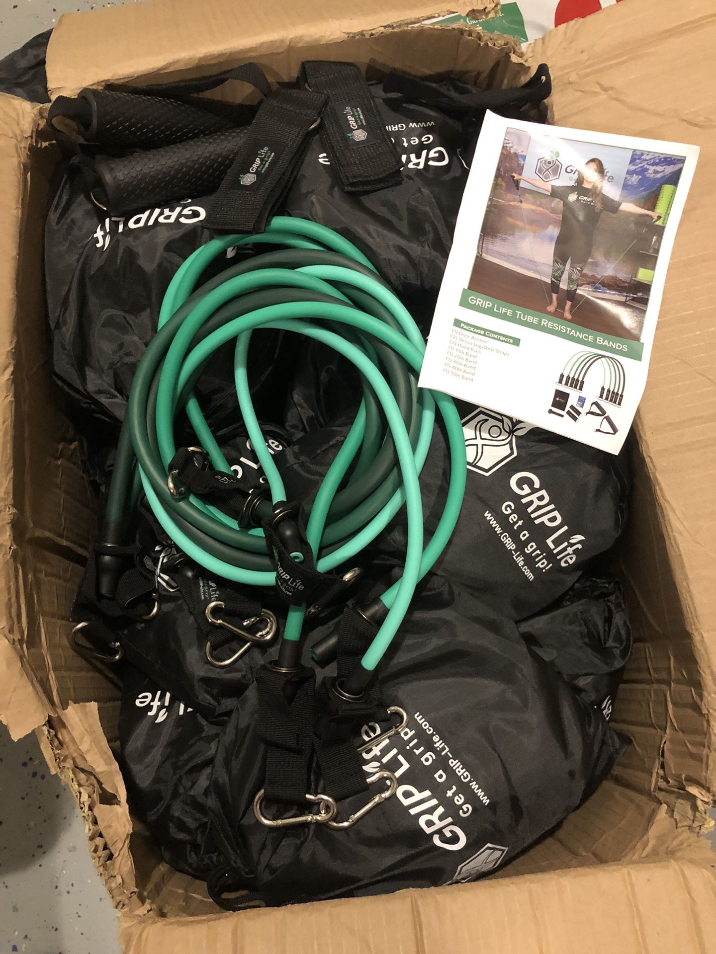 Bundle includes 10 sets Complete set of (5) bands of various resistance levels, (1) carrying bag, (1) door anchor, (2) hand grips, (2) ankle straps, and exercise guide Brand New Multiple Available Non-latex hypoallergenic resistance bands set. Workout in the comfort, convenience, and privacy of your own home with the cable system. Get a total body workout without needing to leave your house!