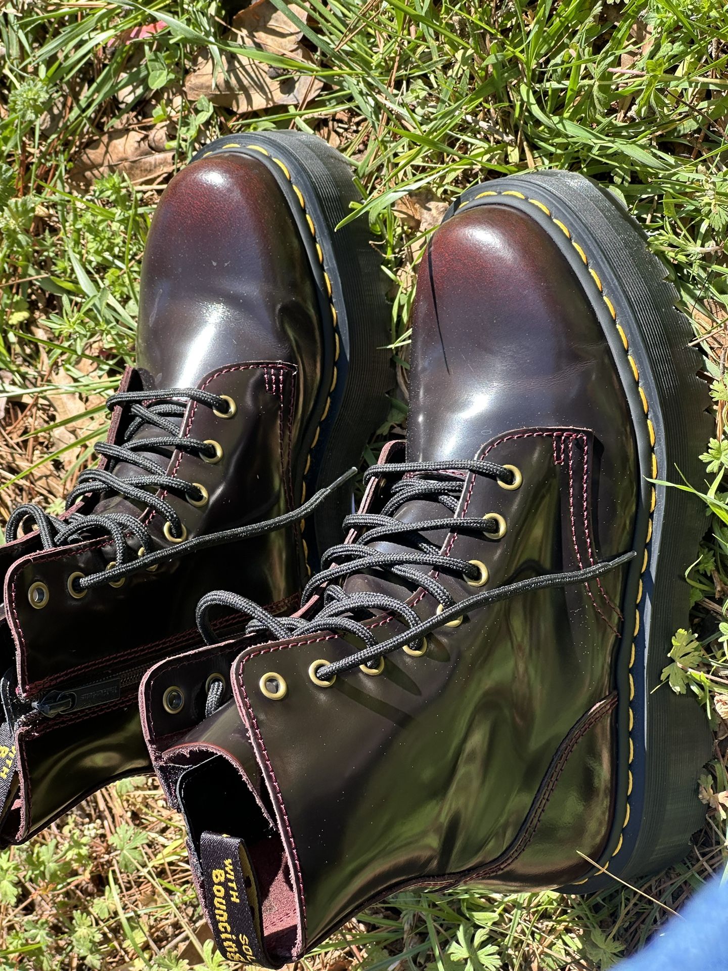 Size 8 Dr. Martens Jadon Arcadia Leather Platform Boots in Cherry Red.