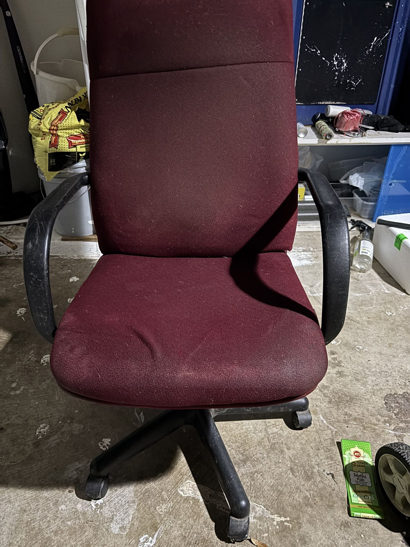 Used Red office chair with plastic stance and wheels. OBO Cash,Zelle or Apple Cash only