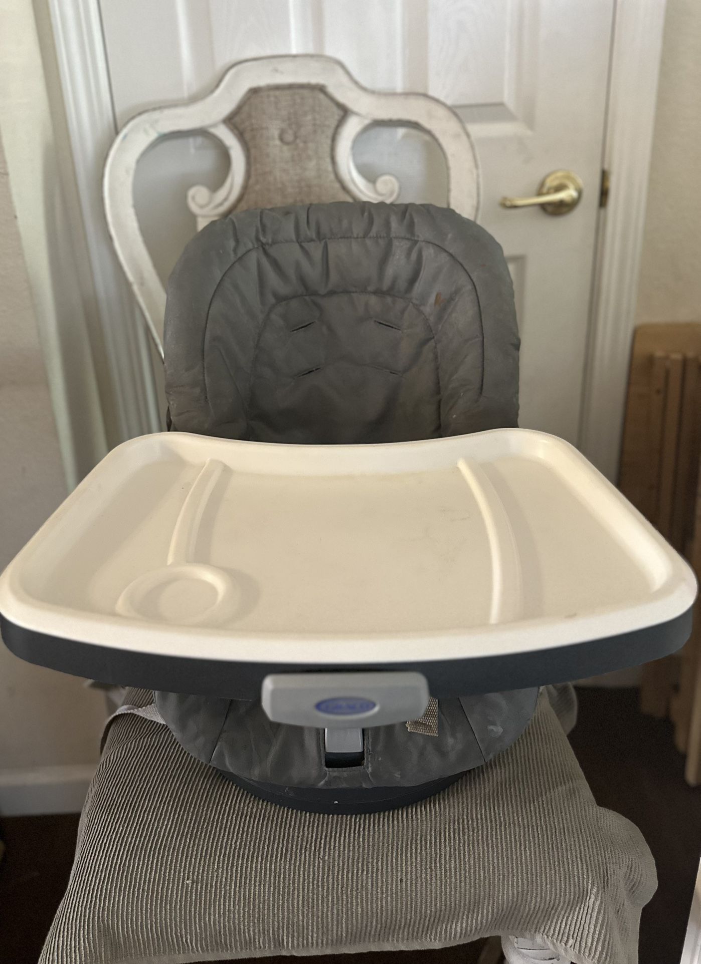 Portable High Chair (pivots) Grey and white Graco Sacramento Davis roseville Elk Grove woodland Citrus Heights natomas child kid baby