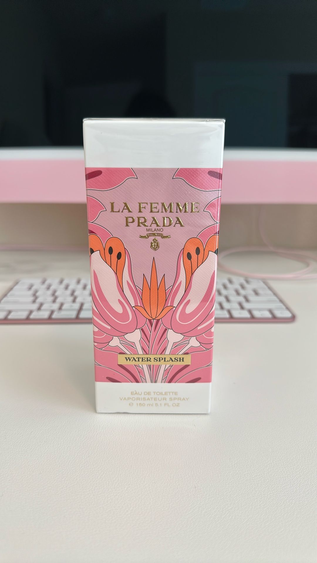New 5.1 FL.0z Prada La Femme Water Splash — a fresh, elegant floral with notes of mandarin, frangipani, and sandalwood. Light, tropical, and refreshing — perfect for warm days or a clean, feminine everyday scent.