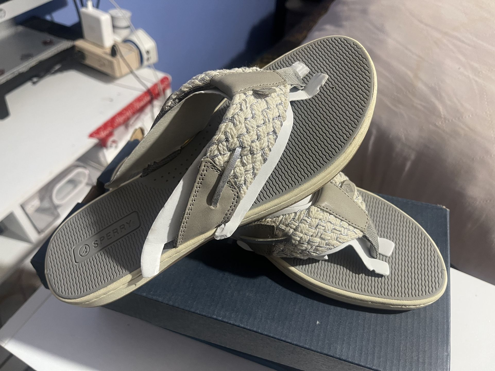 Materials Material: Leather & Mix Materials Lining: EVA Foam Sole: Non-marking rubber outsole with Wave-Siping™ technology for enhanced traction Features Flip Flop Thong Sandals Round Toe Flat Heel Slip-on