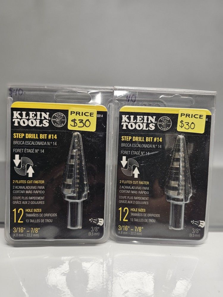 Klein Tools #14 3/16 in. to 7/8 in. Step Drill Bit, Impact Shaft, Double Spiral Flute