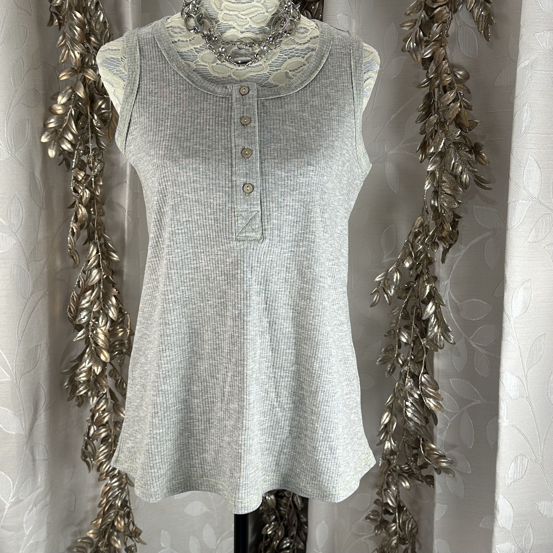 White Birch Small Gray Ribbed Henley Tank Top Neon Stitch Minimalist