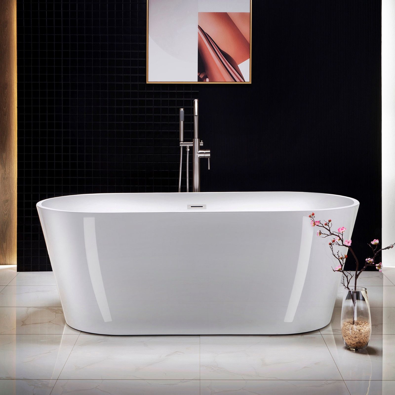 BTA1513/B0013-B/N-Drain&O 67" Acrylic Freestanding Bathtub Contemporary Soaking Tub with Brushed Nickel Overflow and Drain,White Tub