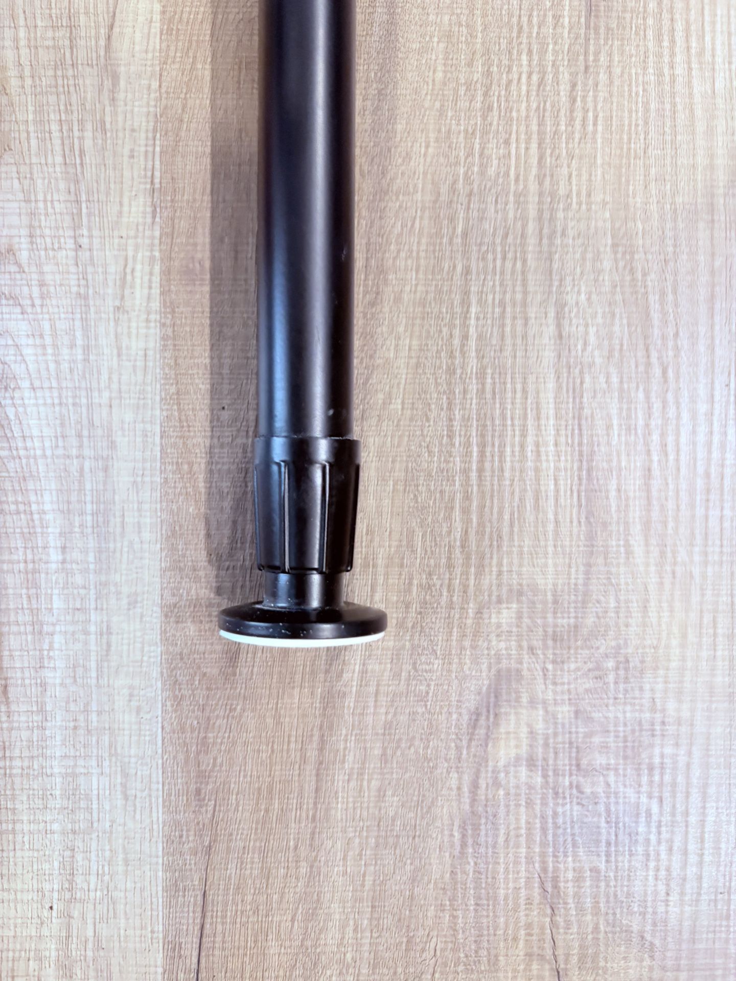 Black tension, shower rod. 58 inches long. Please see pictures for measurements and details. New, removed from new construction