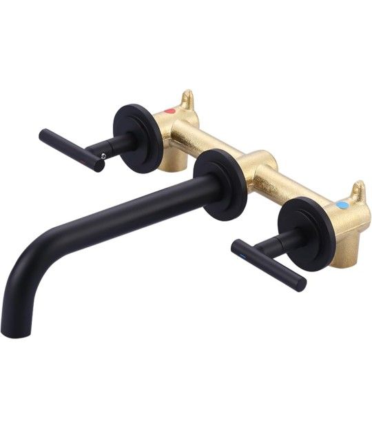 New, unused, in original box - Wall Mount Bathroom Faucet, Matte Black, High Flow, Two Handles, Stainless Steel, Long Spout Reach,Widespread Bathroom Sink Faucet with Rough-in Valve 3 Holes Elegant Classic Spout