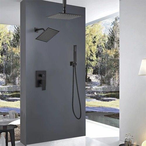 Shower Faucet Set Matte Black Shower System with Handheld, Ceiling Mount 10 Inch Shower Head with 6 Inch Wall Mount Shower Head Brand new On Sale !! Very Good quality!! ***PRICE IS FIRM*** ***First Come First Serve*** *Check Size Details* Click on my profile listing to check more items. Our warehouse is located near Katy Legacy Stadium If you would like to come pick up DM me or call for address Quality Promise: All-metal sturdy construction. Mixing valve made of solid brass with rust-free, long-life characteristics. 304 Stainless Steel Rain Shower Head with silicone nozzles allows you to wipe away mineral deposits with the swipe of a finger. Ultimate High Pressure Shower: Thanks to the ultra-thin design of the rain shower, even in a low water pressure environment, when the water flows out after being squeezed through the ultra-small space, it can also achieve a high water pressure rain shower experience. Matte Black Finish: The elegant matte black finished and sleek look shower system complements any décor. In addition, our products are made of high quality materials, anti-rust and long-lasting durability. Let you enjoy a luxurious rain shower. What’s Included: Ceiling Mounted Shower Head and Wall Mounted Shower Head. Installation Instructions, shower heads, shower arms, handheld shower holder, handheld shower, rough-in valve, all install hardware.
