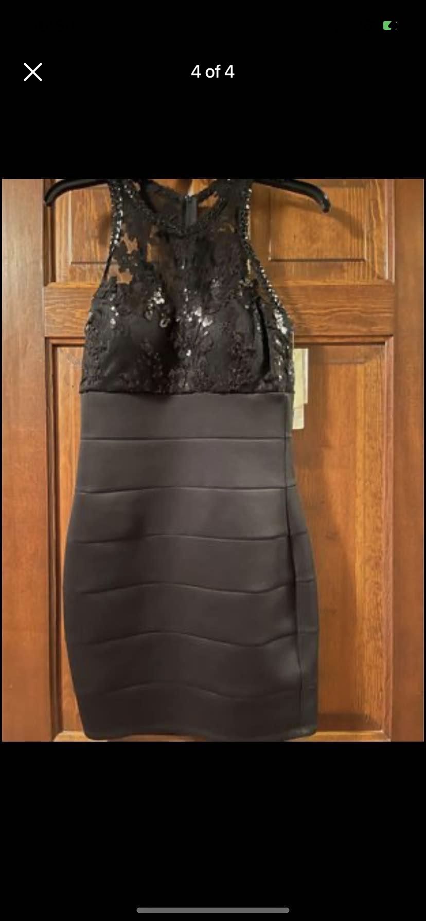 New with tags. Black fitted dress with lace top design. Size 5. Bought at Macys.