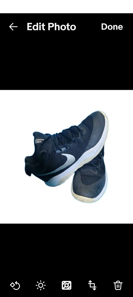 Nike Zoom Rev TB Basketball Shoes for men, size 8.5 – a solid pair for anyone who loves classic Nike court shoes. This pair (style 922048-001) comes in sleek black and white with breathable mesh uppers and Zoom Air cushioning for responsive comfort. Please note: These shoes are pre-owned and need a new insole Details: Brand: Nike Model: Zoom Rev TB Style #: 922048-001 Color: Black / White Men’s Size: 8.5 Condition: Pre-owned – visible wear and insole damage and above the top shoes lace (see photos) (#af5 also on lgar ofup)