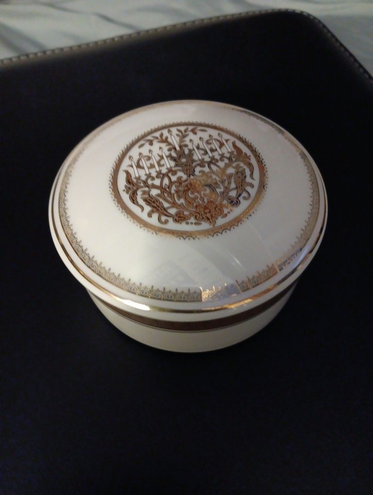 MIKASA FINE CHINA FESTIVAL OF LIGHTS GOLD TRINKET BOX, MADE IN JAPAN. IN EXCELLENT CONDITION