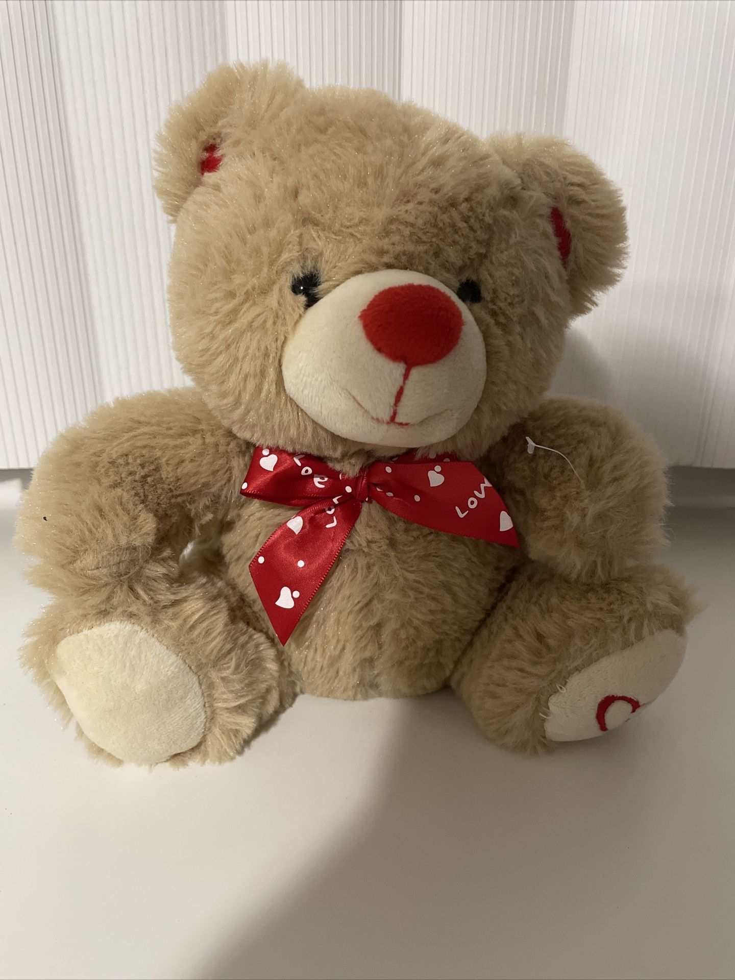 Cute Teddy Bear Plush Stuffed Animal Valentines Gift Hearts And Love Red Bow 9”