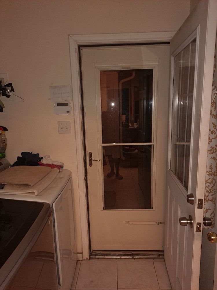 A all glass screen kitchen door with a retractable screen all new in box never open color Almnd fit 31 7/8 to 32 7/8
