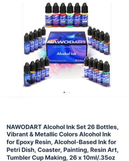 NAWODART Alcohol Ink Set 26 Bottles, Vibrant & Metallic Colors Alcohol Ink for Epoxy Resin, Alcohol-Based Ink for Petri Dish, Coaster, Painting, Resin Art, Tumbler Cup Making, 26 x 10ml/.35oz