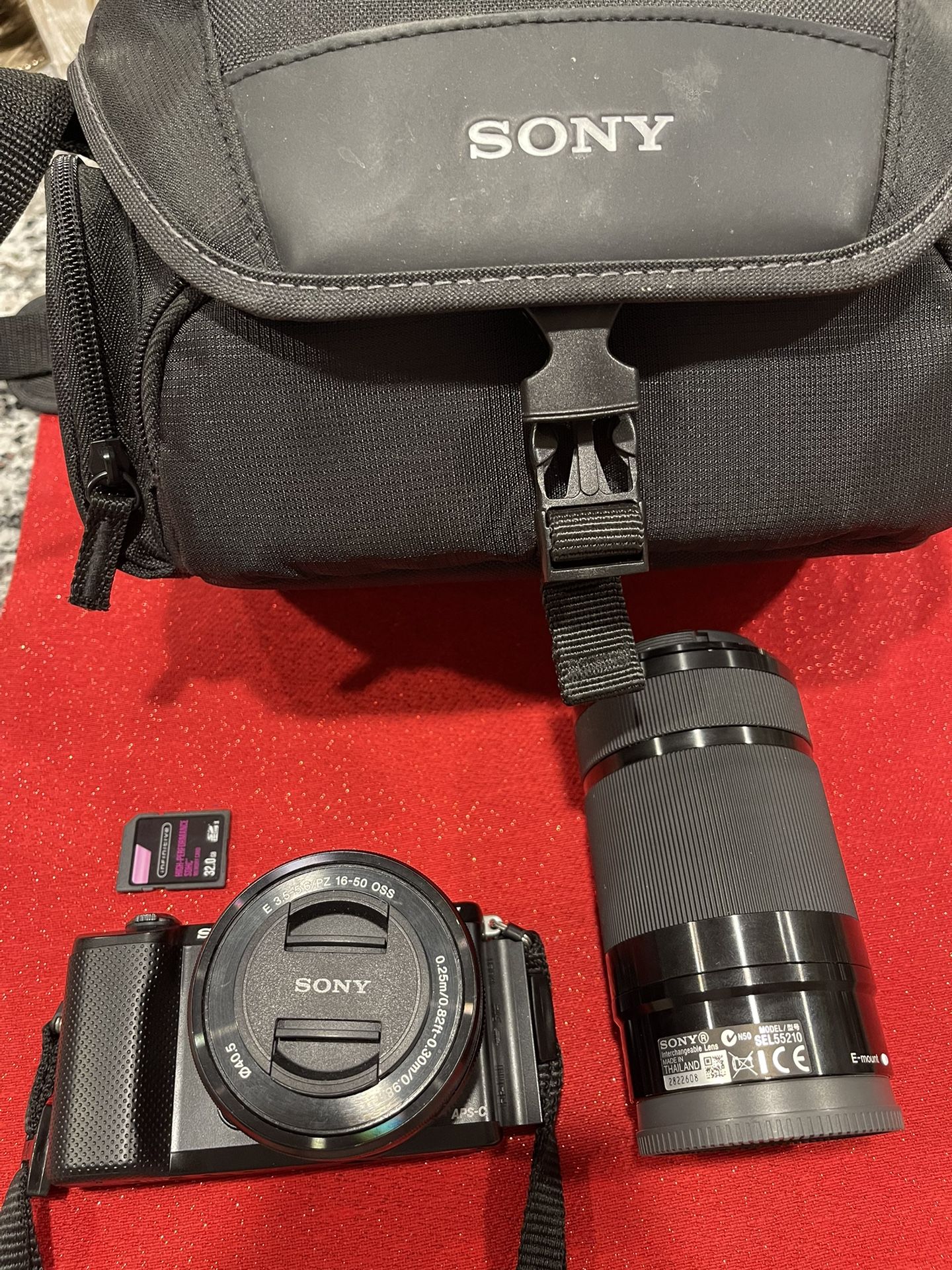 Sony alpha A5000 Mirrorless camera With extra lens included Sony E 55-210mm 2 batteries 32gb memory Charger and bag Great condition $400 I’ve attached Amazon links for new