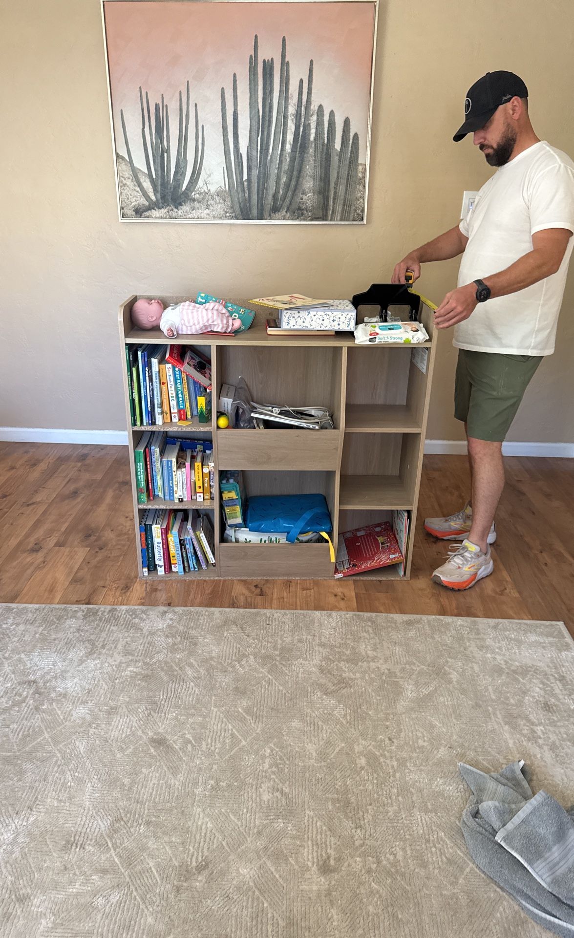 12 depth, 41 inches tall 42 inches long Purchased from bed bath and beyond