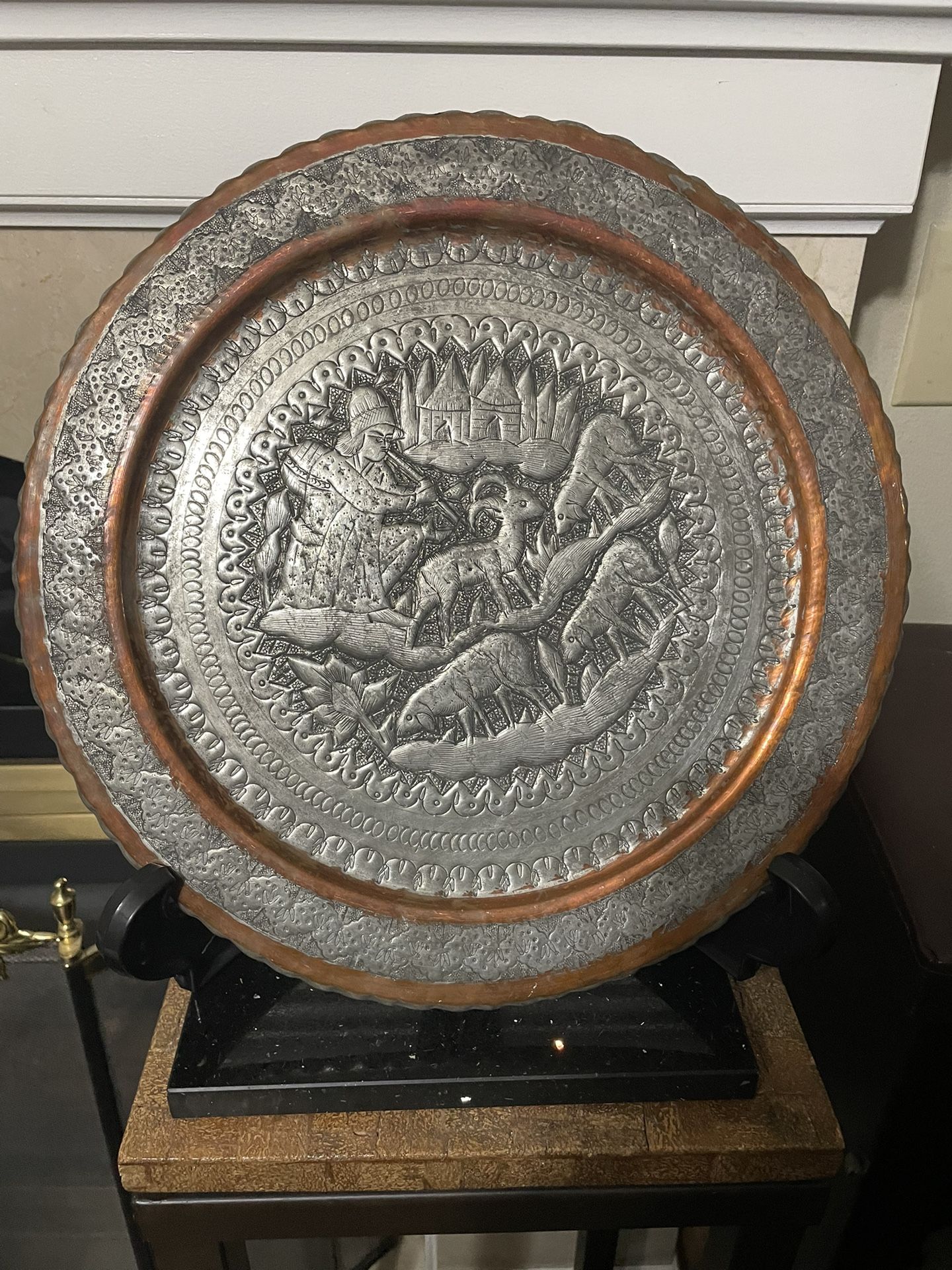 Vintage Tinned Copper Tray ,from Middle East 15”D