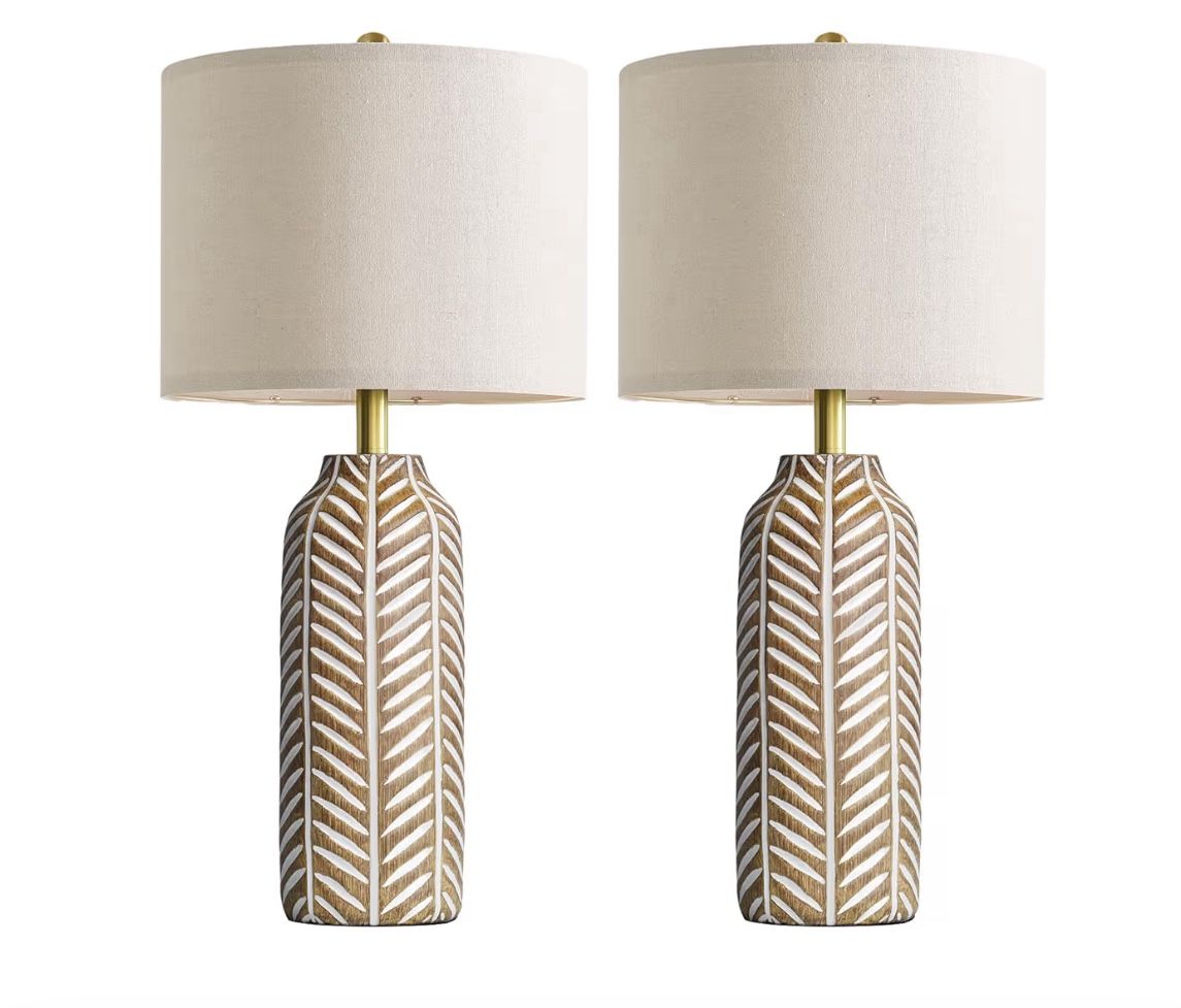 New in box!! BOBOMOMO 26" Farmhouse Table Lamps Set of 2 - Vintage Leaf Design, Rustic Resin Nightstand Lamps for Bedroom, Living Room, Nursery, Hallway, Elegant Living Room Lamps with Linen Shades Antique Brown