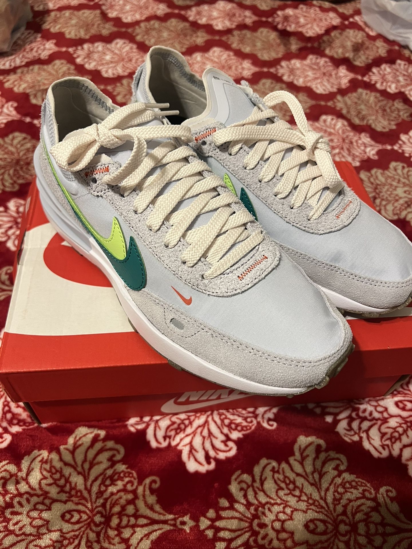 NEW $70 Size: 7.5w / 6y W Nike Waffle One SE (football grey/ Neptune Green)