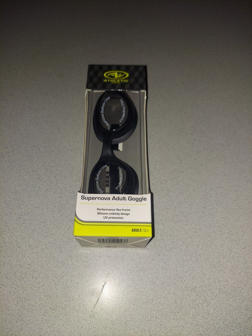 ATHLETIC WORKS TINTED SWIM GOGGLES WITH ANTI FOG LENSES NEW FACTORY SEALED