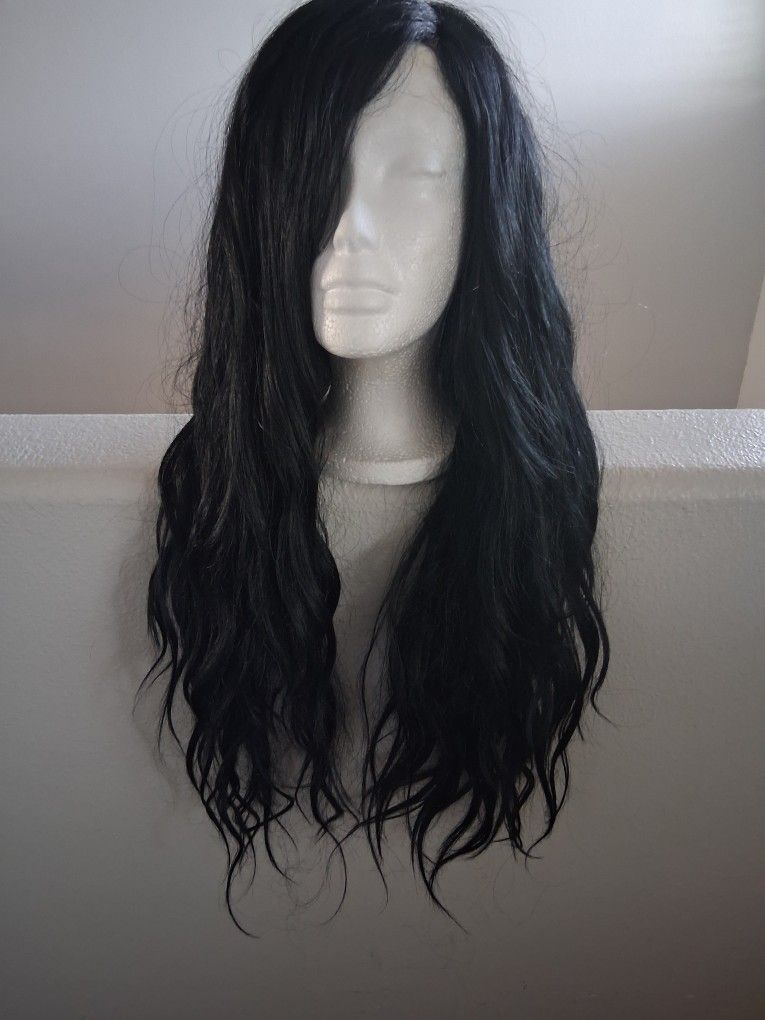 I'm selling this gorgeous synthetic wig with a 5 inch deep side part. It's about 26 inches long and very natural looking curls.