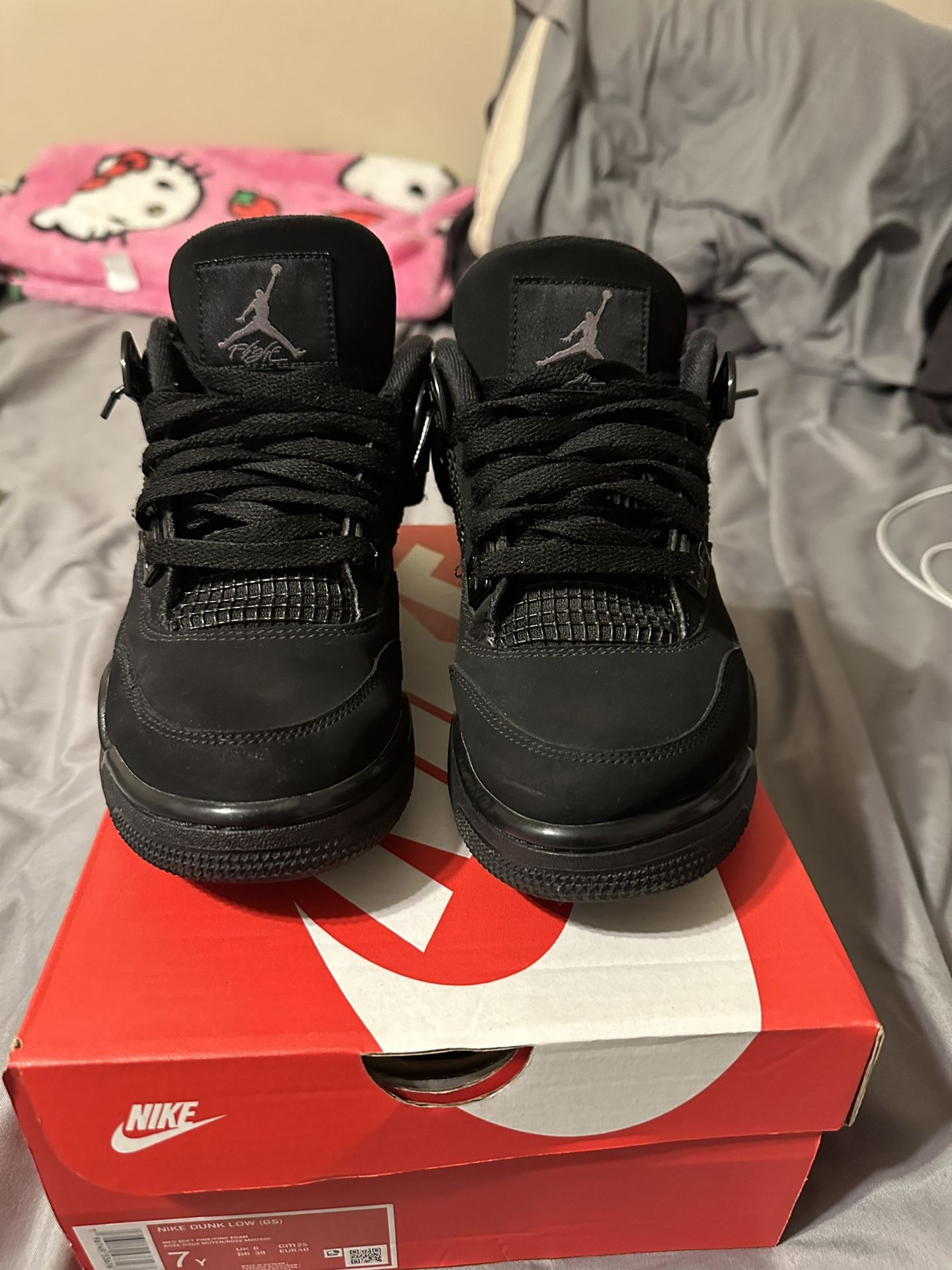 Jordan retro 4 black cats Size 7 No box!! Condition is 8/10 only bottoms used top looks great No trades!! Only negotiate if buying more than one! This shoe is a gem hard to come around specially this size!