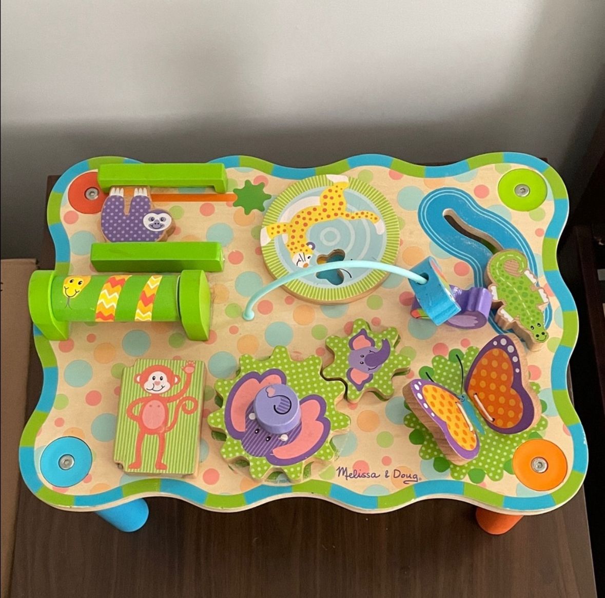 Bright and engaging play table. Features colorful animals and shapes. Encourages creativity and motor skills. Smoke and pet free home