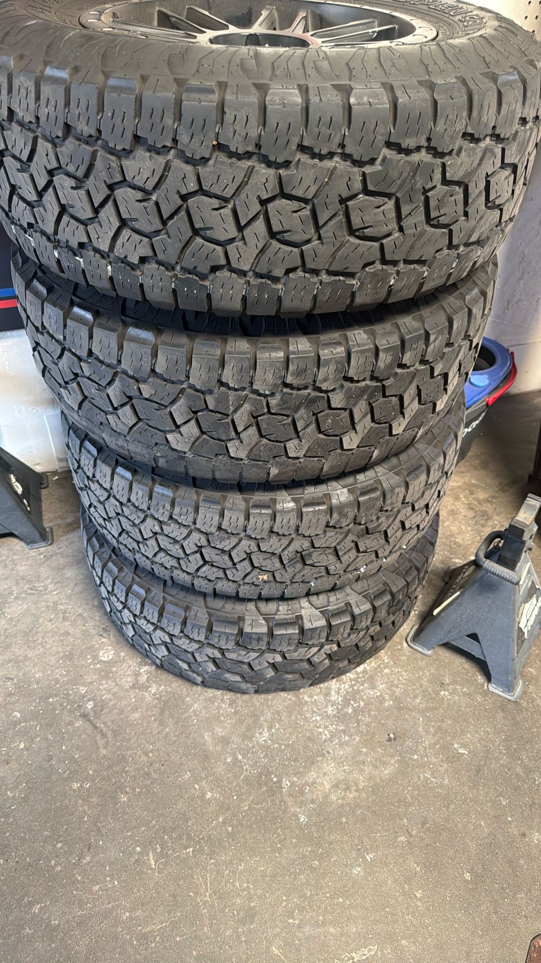 4 rims and tires two tires r good 2 need replacement 5x112 17” had the on a Volkswagen atlas 2022 Rims r matte black not dipped rims where ceramic coated their just dirty now no scratches on them Asking $600 obo