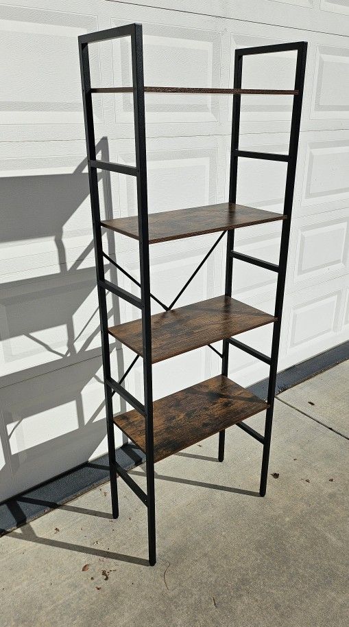 We're doing a moving away sale, going across the country so we need to lighten the load. We got a set of two metal & wood shelves. Each one is $50. Should be able to handle a medium to small sized collection of books, comics, & even figures! Each shelf comes with 3 extra wood planks, but we don't have the bolts to install them. Dimensions per shelf: 69" tall, 23.25" wide, & 12" depth. Weight is about 15-20 lb.