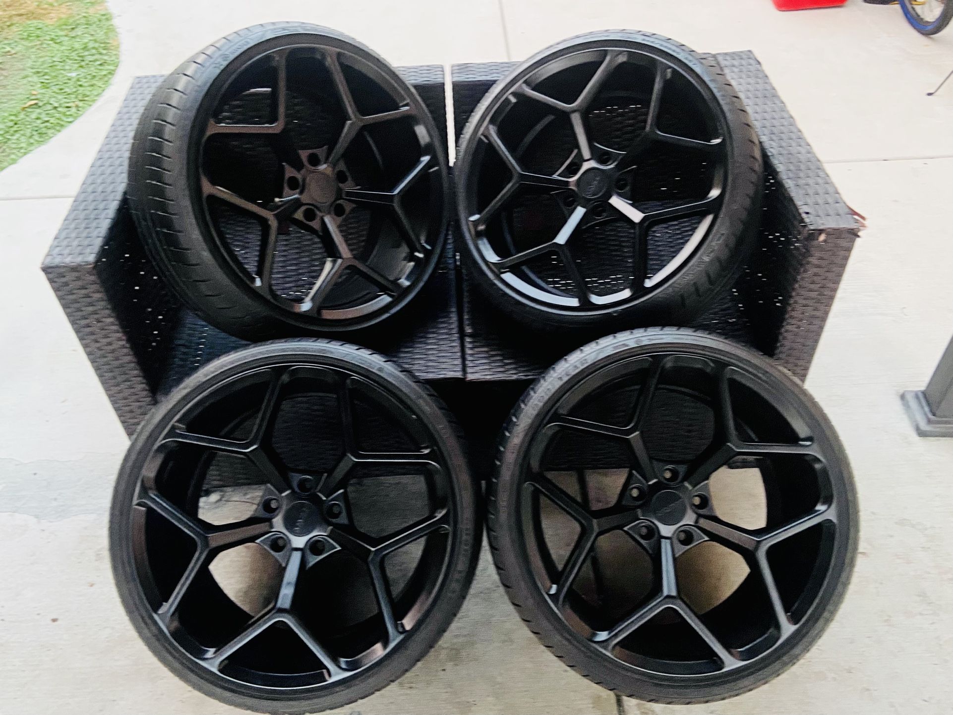 MRR 20’ Inch Z28 Performance Satin Black “Full” Aluminum Wheels With Goodyear Eagle F1 Sport “Run Flat” Tires Fit Models SS RS LT 1SS 1LE ZL1 2SS G8 CTS SS Sedan CTSV Impala Malibu And Much More 5x120 - 5x4.75 Bolt Pattern Standard 20’ Inch MRR Satin Black Z28 Rims/Wheels Front Wheels 20x10 Rear Wheels 20x11 Goodyear Eagle F1 Sport Performance “Run Flat” Front Tires 245/35/R20 Rear Tires 275/35/R20 Contact For More Information And Viewing 5 1 0 - 8 S E V E N 8 - 6 0 T E N
