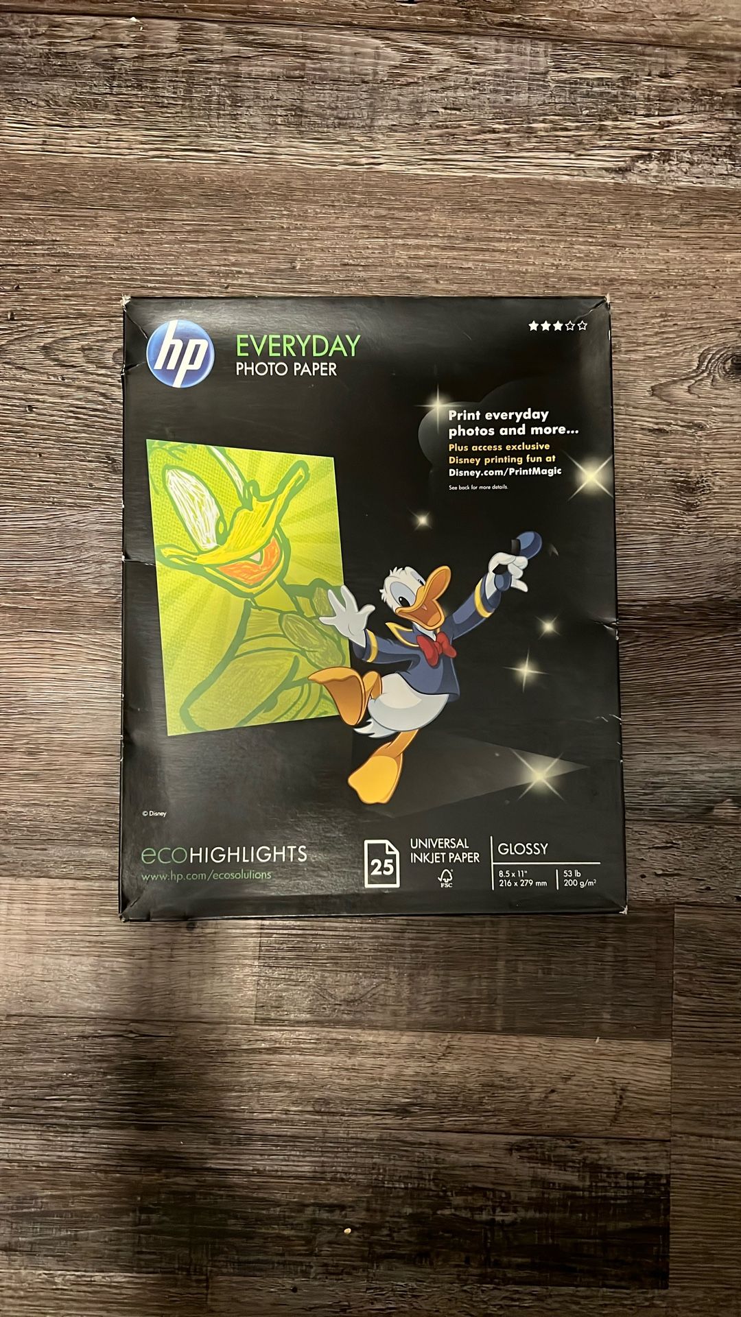New- unopened HP Everyday Photo Paper. Size: 8.5x11”. 25 sheets