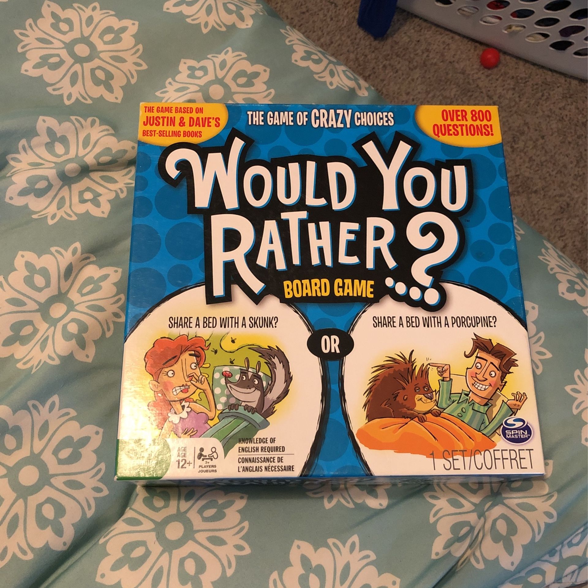 Has all its pieces and in new like condition For 3 or more players The game of crazy choices. Super funny!