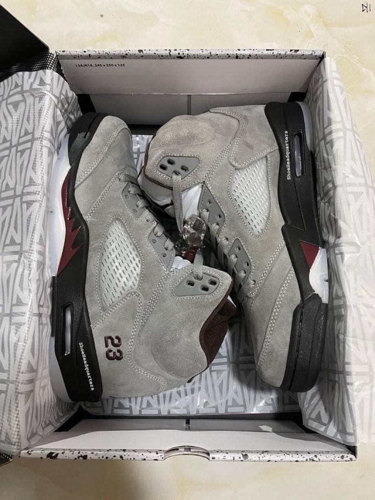 Jordan Air Jordan 5 Gray Suede Lace Up Mid Top Men's Athletic Sneakers
