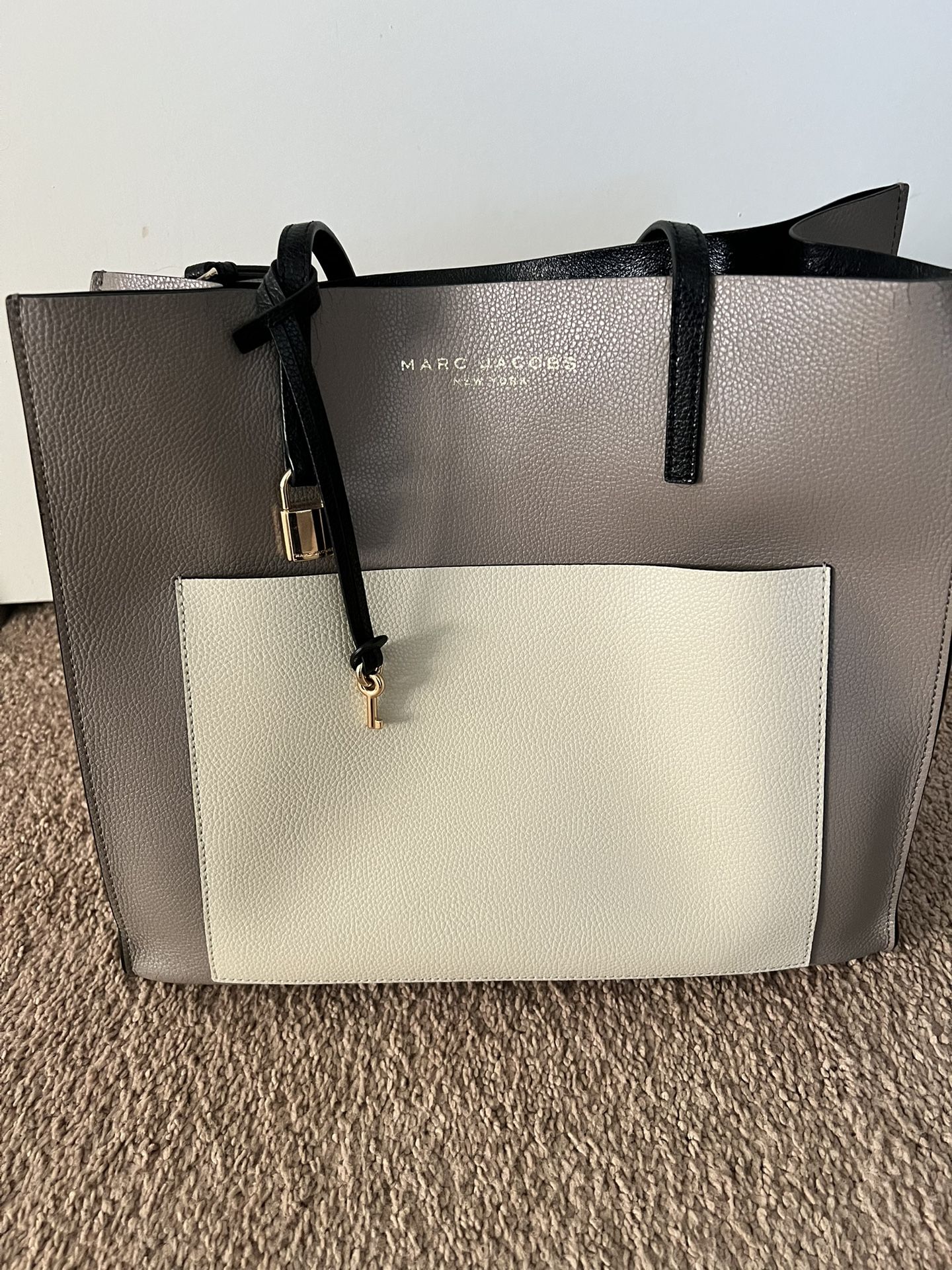 Marc Jacobs color block satchel. Open top bit has zip compartment in the middle. Gold hardware. Dimensions 12x13x5.5 inches Drop handle to 10 inches