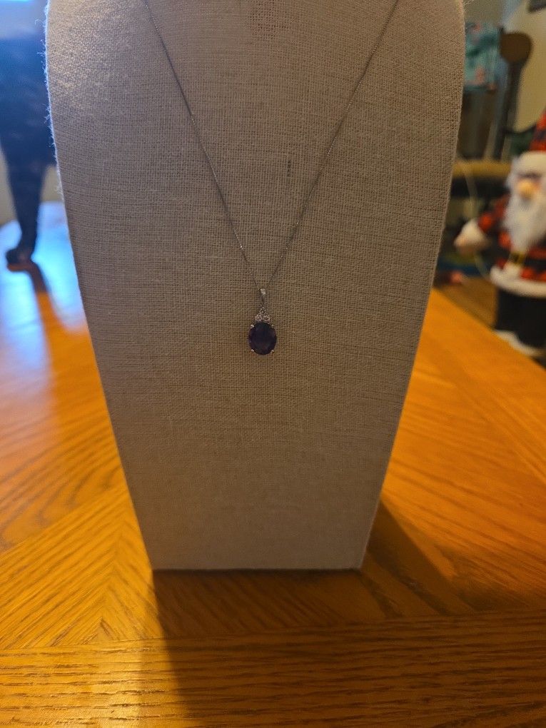 Sterling silver chain with an amethyst stone. All Fred Meyer Jewelery.
