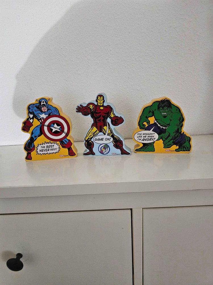 Wooden Marvel Decor for kids room. About 5 x 5 inches, depending on the character. Asking $25 for all 3 OBO.