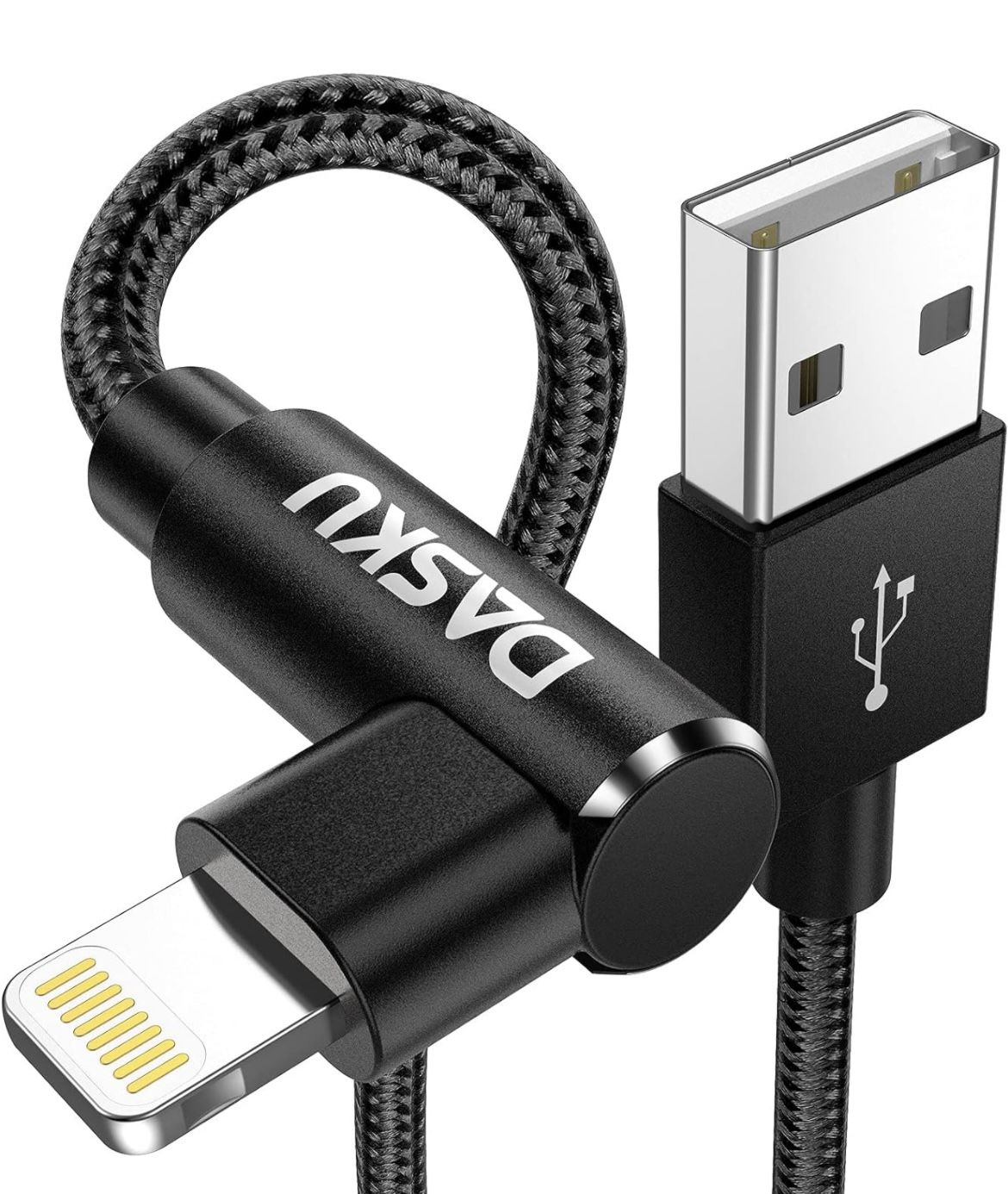 90 Degree iPhone Charging Cable 2Pack 10ft Right Angle Nylon Braided Lightning Charger Cord Compatible with iPhone 14 13 12 11 Pro Max XS XR X 8 7 6 5