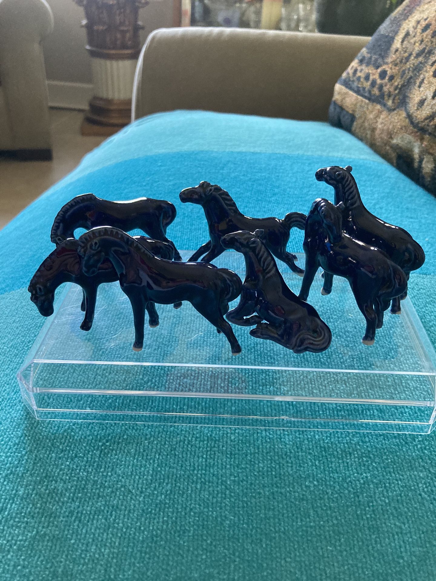 Vintage Chinese, miniature figurines, glazed, ceramic cobalt blue Porcelain 3 inch set of.7 great condition pick up only